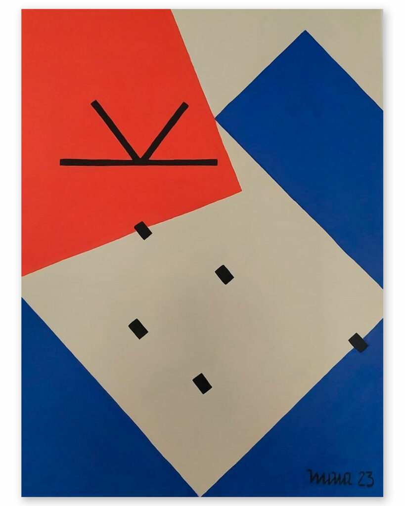 « Géométrie de déplacement » est un diptyque composé de deux œuvres distinctes, « Zone d’incertitude » et « La migration forcée n’est pas volontaire », qui explorent de manière abstraite et conceptuelle le phénomène du conflit migratoire. Ces peintures, réalisées en acrylique sur toile, utilisent des formes géométriques et des couleurs complémentaires pour représenter le déplacement forcé interne et transfrontalier en Colombie.